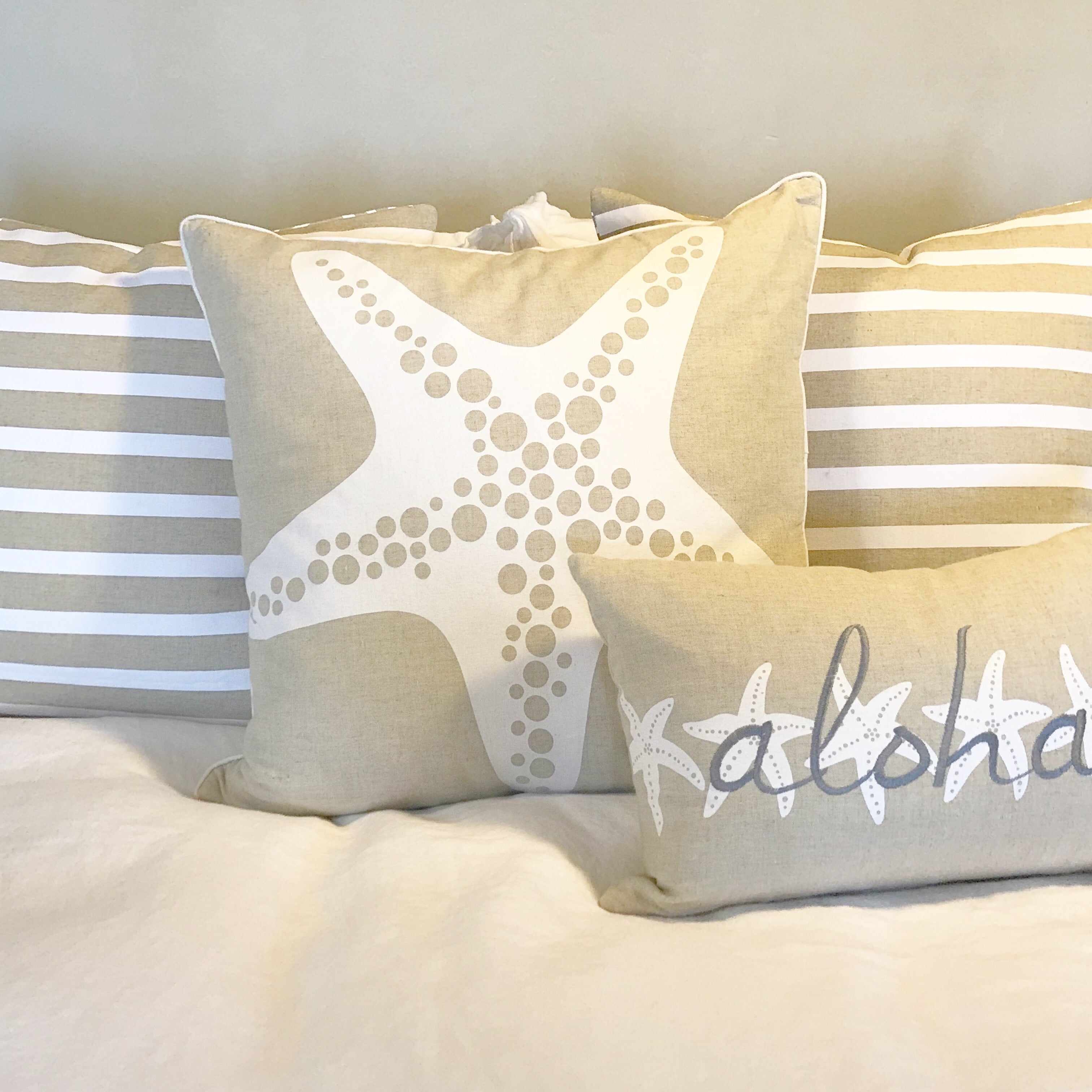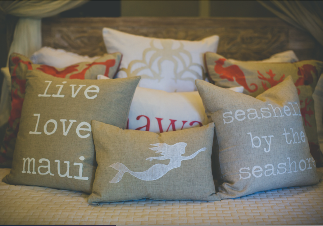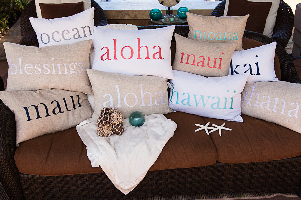 High-quality 100% natural linen pillow covers embroidered with Hawaiian words, and their...